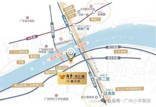 区位也非常显赫,位于海珠城央的滨江西路,且地处广州第一中轴,距离广州市政府的直线距离仅约1.9公里。