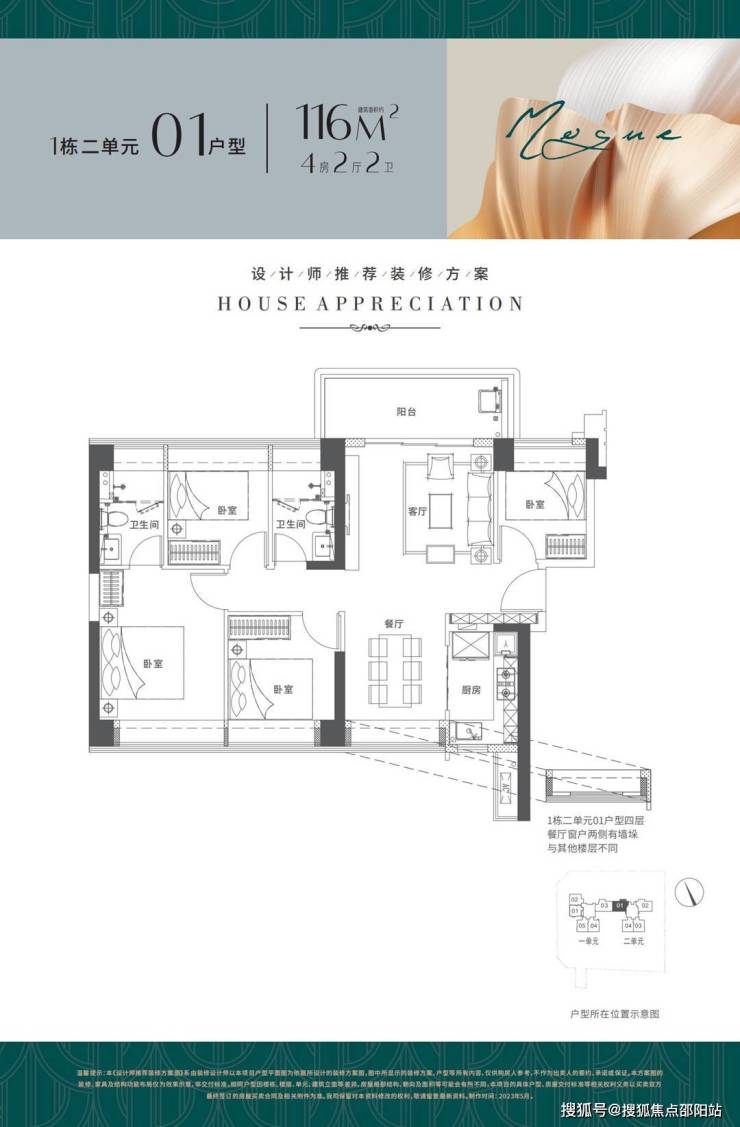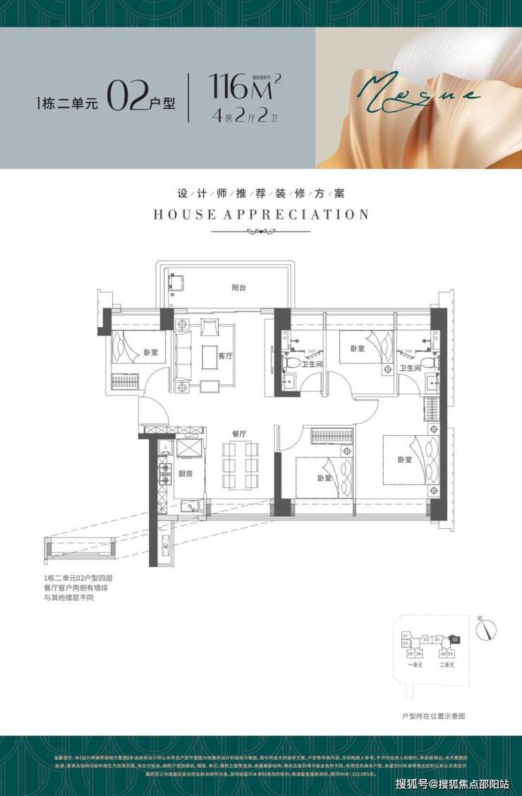 户型面积布局02116平四房两厅两卫
