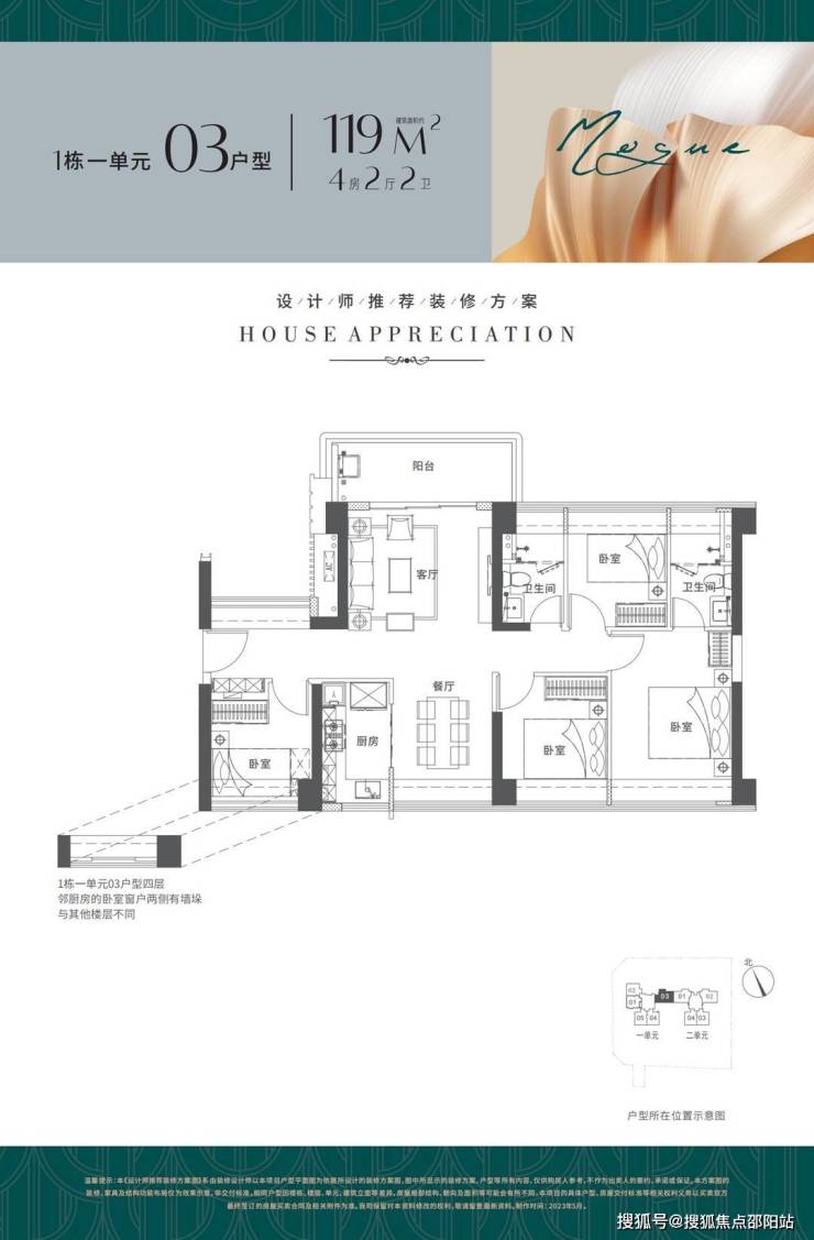 户型面积布局03119平四房两厅两卫