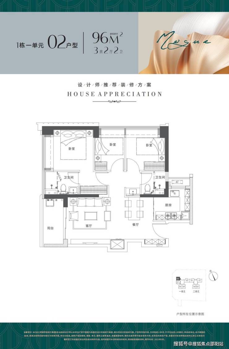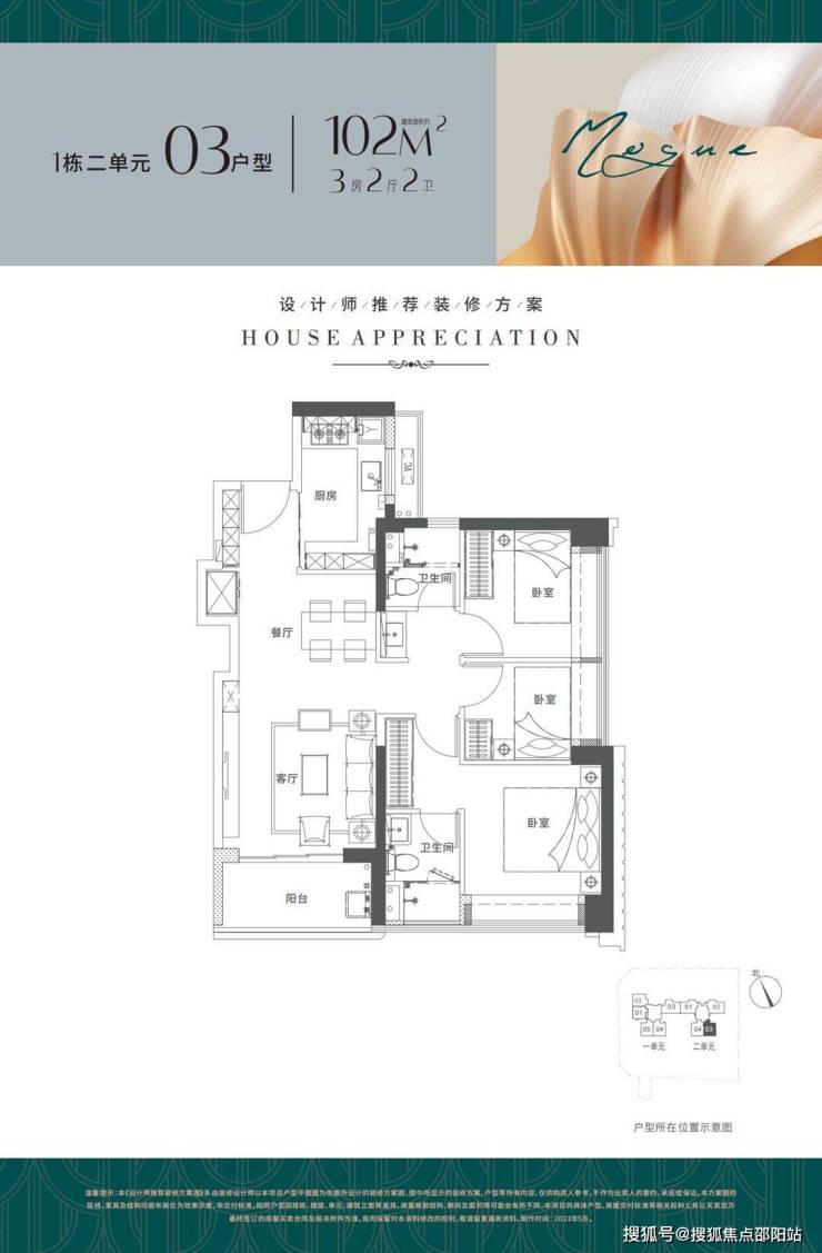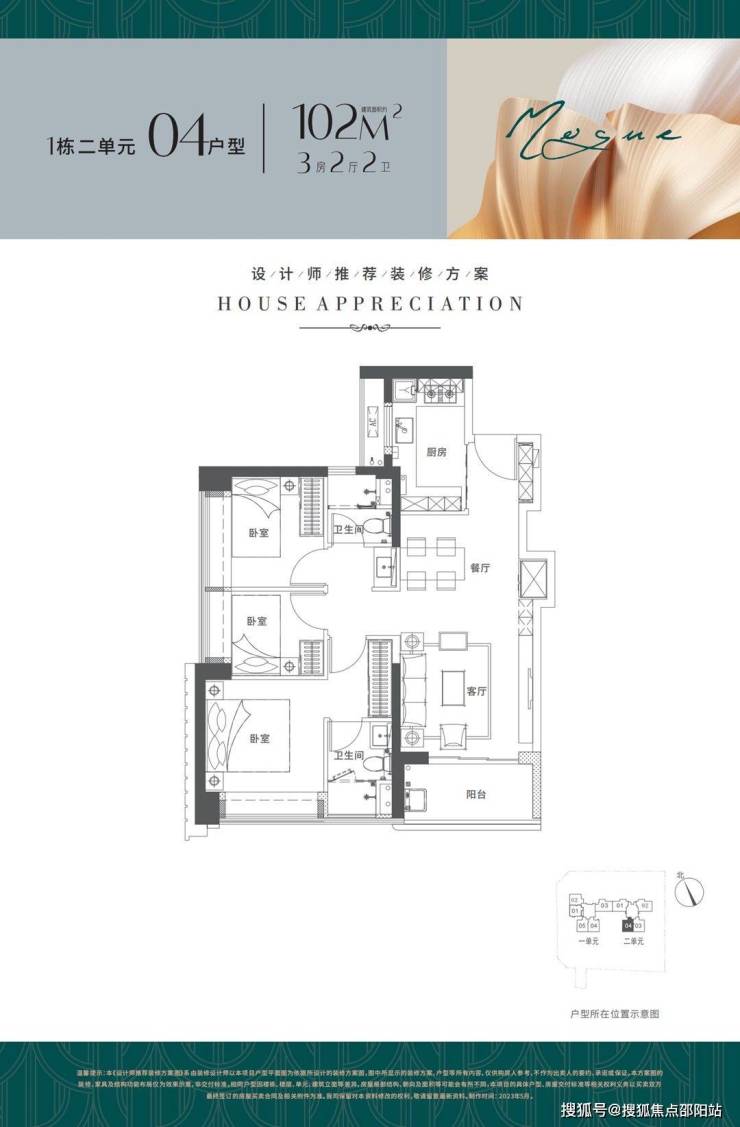 户型面积布局03102平三房两厅两卫