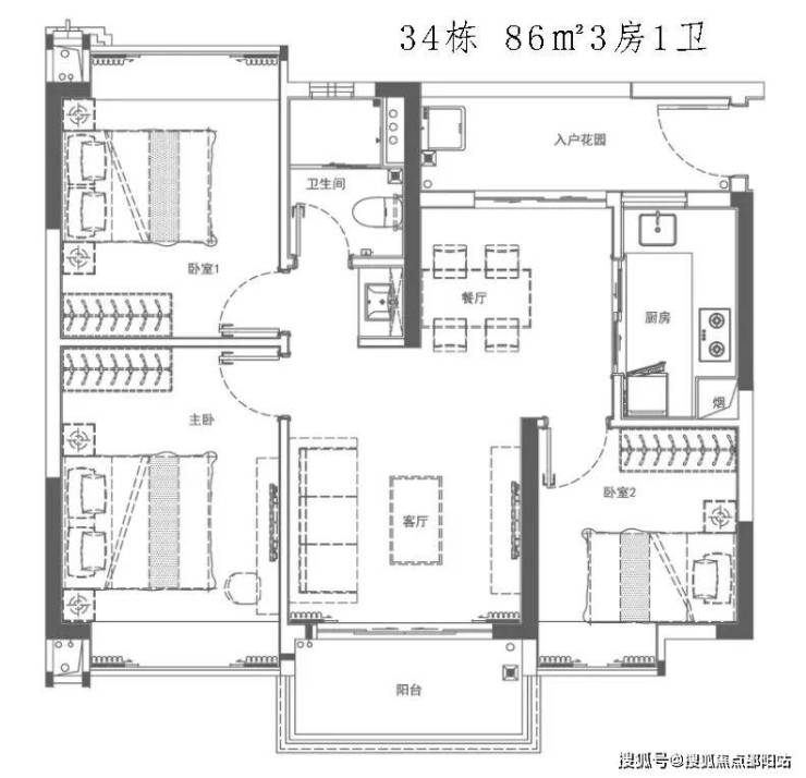 南北对流款餐客厅一体,阳台能放下洗衣机和休闲桌,适合注重通风的家庭;