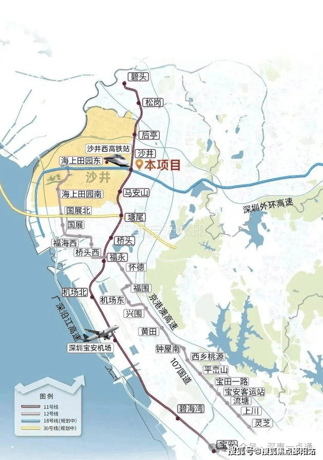 项目周边还有规划中的地铁18号线和20号线,其中18号线一期为空港新城至龙岗平湖段,规划连接新桥与空港新城、光明科学城等核心区域;20号线将延伸至沙井西站,实现与穗莞深城际的无缝换乘。随着深中通道的建设,沙井将成为深圳连接东莞、中山的枢纽,锦和玉鸣府居民可便捷通勤至东莞、广州等大湾区城市,实现"1小时经济圈"的便利生活。