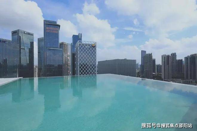 「顶层云端泳池」云端屋顶空间营造天际观海泳池、空中步道、草坪观影、观景吧台等,同频城市峯层的品味共识,塑造云端艺术领地,在此尽享舒适。