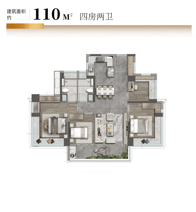 ◎ 建面约110㎡4房2卫: