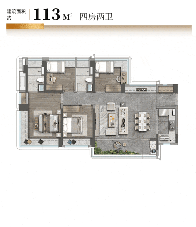 ◎ 建面约113㎡4房2卫: