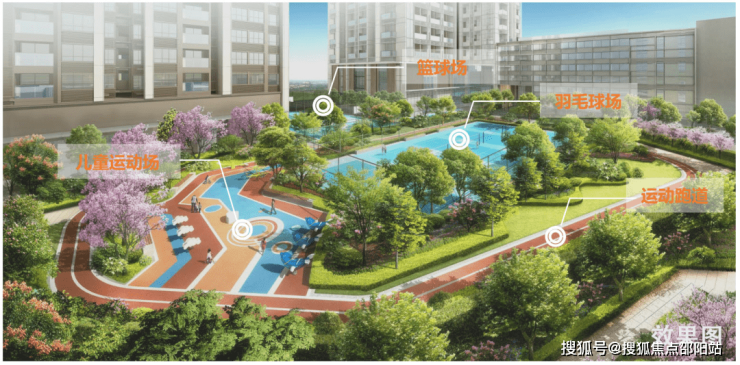 约5900㎡室内外运动共享空间(涵盖运动跑道、儿童游乐区、羽毛球场、篮球场等),规划社康中心及老年人日间照料中心,满足全龄段大城生活,室内外运动共享空间、社康中心、老年人日间照料中心属于政府配建设施,将移交政府管理,非交付标准。