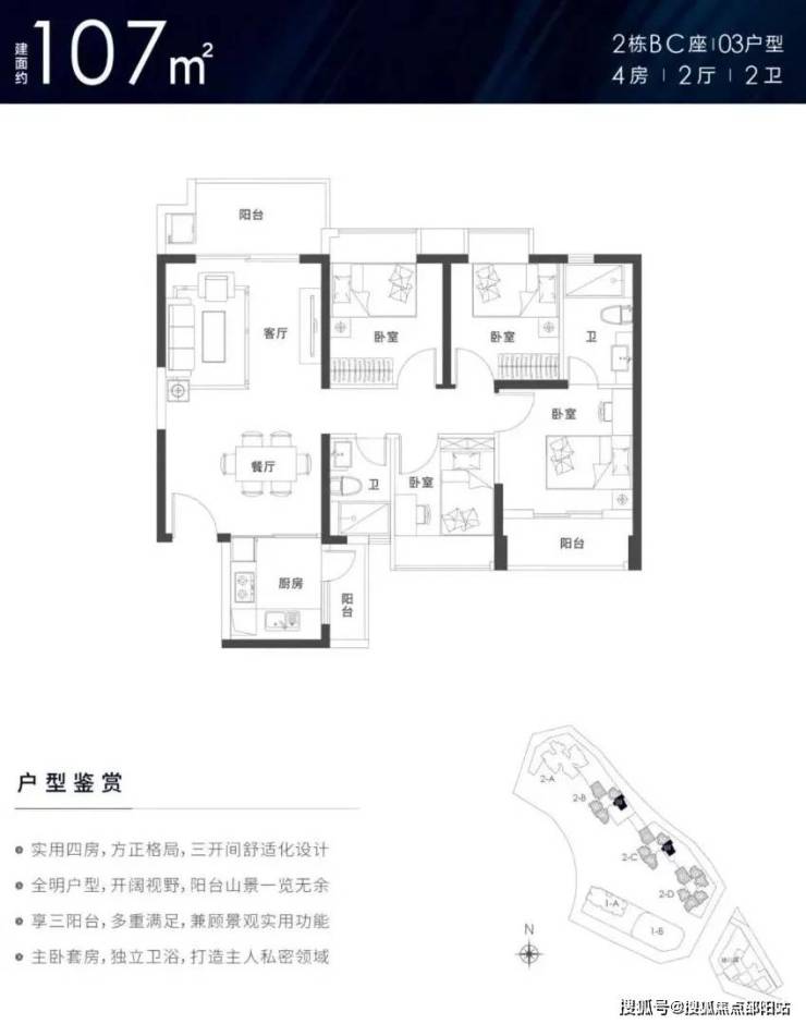 建面约79-129㎡3-4房户型,南北通透