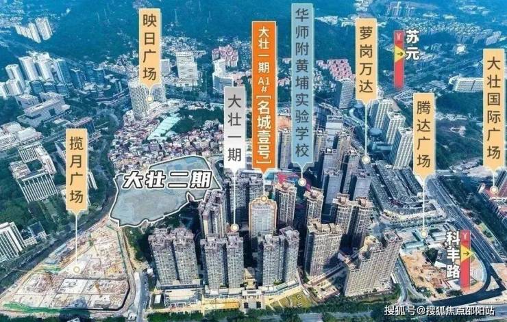 大壮名城的优点几句话就可以概括完。 科学城的核心区位。城市界面漂亮,有公园。 家门口有萝岗万达的商业配套,出门就能上开创大道或者开泰大道,这两条科学城的主干道。 三地铁交汇,6号线、7号线和21号线。有九年一贯制的华师附黄埔实验学校。 对了,除了这些,还有一个新规下,科学城首个超过百分百得房率的新房产品。留下新房韵味还没散去的一期业主,在风中凌乱。 这次大壮二期开盘,自然也没有摒弃喜欢震撼大家的优良传统。