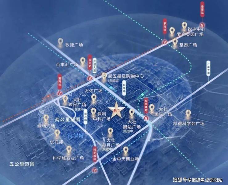 大壮名城名门周边环绕万达广场、大壮国际广场、揽月广场(在建中)、映日广场(在建中)、腾达广场(规划中)五大广场,项目旁拟规划建造五星级购物中心(以实际建设为准),繁华生活在此开启