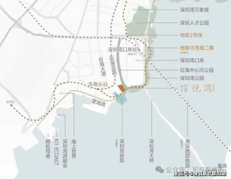该项目地理位置十分优越。项目位于南山后海大道与望海路交界东北角,其东边是新校海岸学校,北边是奥城花园、翡翠海岸等豪宅,南边是深圳地标——深圳歌剧院(在建中),西边是深圳湾口岸,占据着深圳湾绝对中心位置。