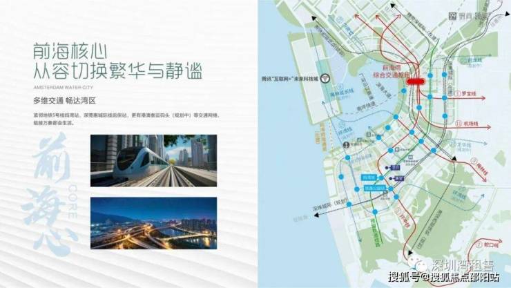 周围覆盖地铁1号线、11号线、5号线延长线以及9号线;同时规划有深港西部快线、深惠城际线、穗莞深城际线、坪山快线、深中通道等,通过公路及轨道交通基本覆盖湾区核心城市。除此之外,前海还规划了地下综合交通枢纽,这是亚洲最大的交通枢纽工程,位于前海桂湾片区,占地约20万平米,建筑面积约216万平方米,总投资约288亿。定位为多种交通接驳方式于一体的综合性交通枢纽。妈湾跨海通道直通大铲湾链接沿江高速,全长8.06公里,于 2019年2月动工,预计2023年竣工,未来妈湾跨海通道的建成,实现客货分离(采用海底隧道走货柜车,地面走客车)可大幅度改善缓解整个周边的交通压力和环境。