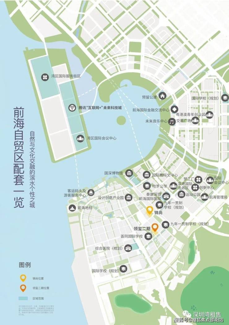 前海分段集中布局国际、区域级公共设施,打造国际化现代化湾区核心,采用单元式开发模式,围绕产城融合、特色城市、绿色低碳三大策略。