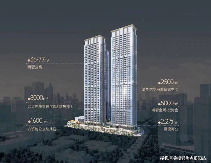 ·约2.2万㎡潮流商业·约5000㎡精英会所·约8000㎡北大光华管理学院(北大光华瑞思楼)·约2500㎡清华大学港澳研究中心·约1600㎡六班制公立幼儿园共同组成