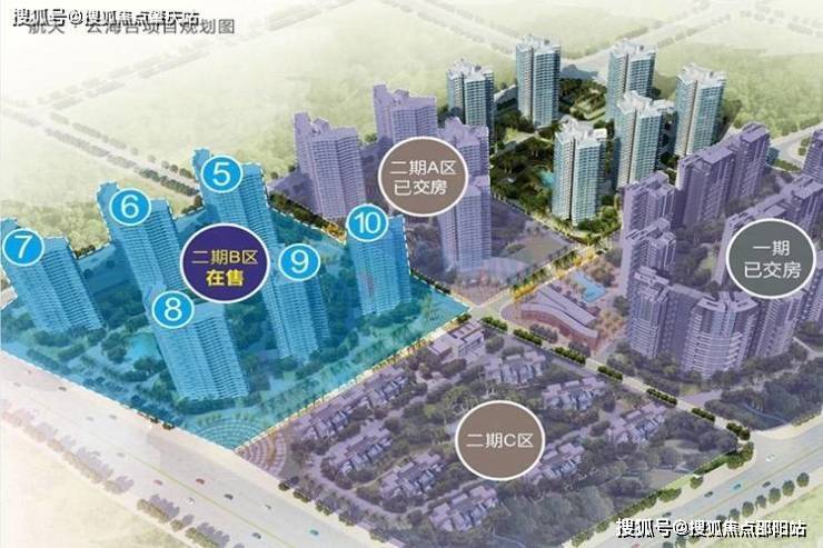建筑面积约57-63 ㎡精装海景现房,即买即住,总价约115万/套起!二期分A、B、C三区,1-2栋26层,一梯六户。3-4栋24层,三梯九户 二期B区总建筑面积76882.5㎡,由5-10号楼共6栋高层组成,共计1100户,层数为26层(1层架空),停车位1041辆。容积率2.0,物业费2.10元/㎡·月。