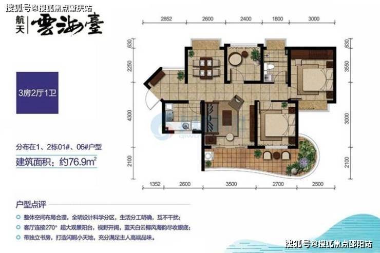 01、06#户型-建面约76.9㎡-三房两厅一卫一厨
