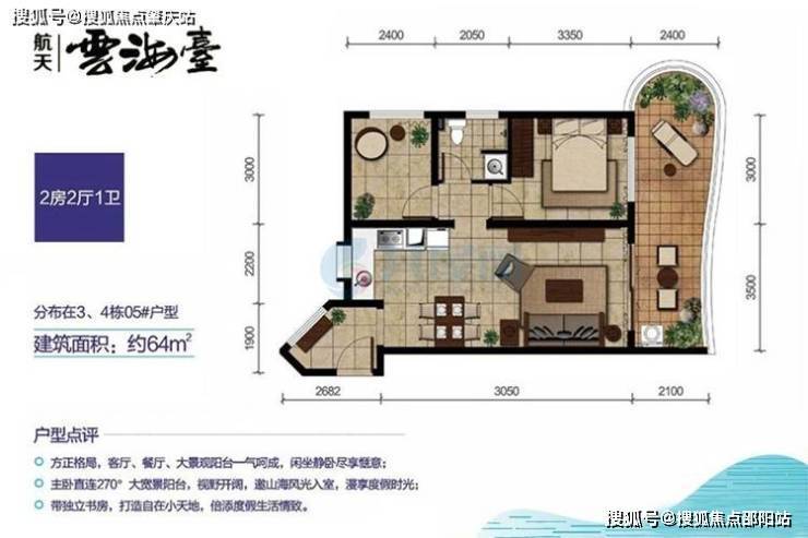 05#户型-建面约64㎡-两房两厅一卫一厨