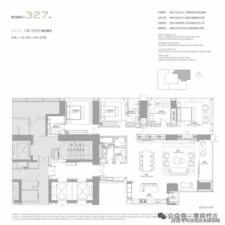 【327平03户型 三房二厅四卫+管家套房】