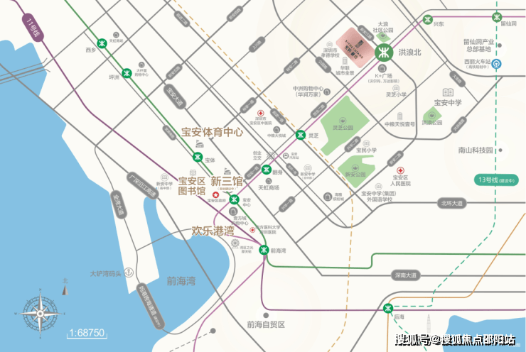项目紧邻地铁5号线洪浪北站、主干道—宝安黄金发展中轴创业二路,近107国道,与深圳宝安国际机场直线距离约11公里,链接万象都会生活
