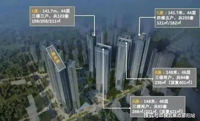 1栋E座:141.7米,44层 共123户,朝南为主,三梯三户
