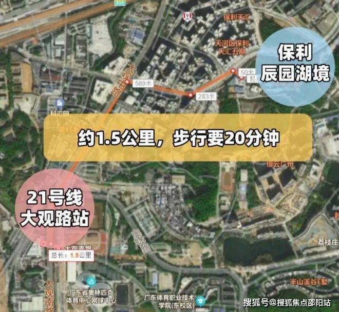 项目距离地铁21号线大观南路站约1.5公里,步行约15-20分钟。为解决“最后一公里”问题,项目贴心配备专属电瓶接驳车,每20分钟一班(运行时间9:00-18:00),无缝衔接地铁出行。此外,周边1公里内分布8个公交站点,多条线路覆盖天河、黄埔主要生活节点。