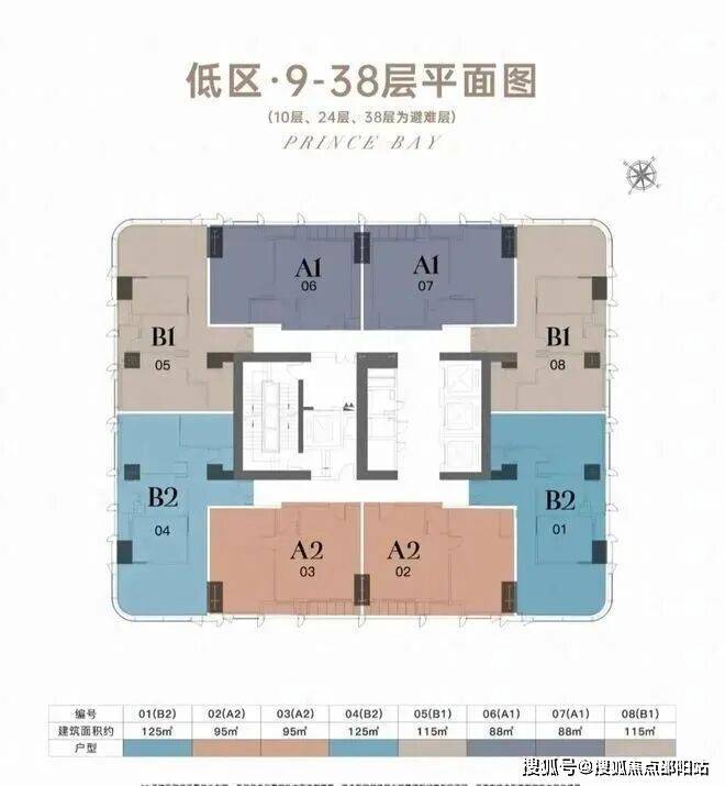 •建筑形态:194米超高层塔楼,共50层,分为低区(9-38层)、高区(39-48层)及顶层(49-50层),梯户比从低区4梯8户到顶层4梯4户逐级优化。