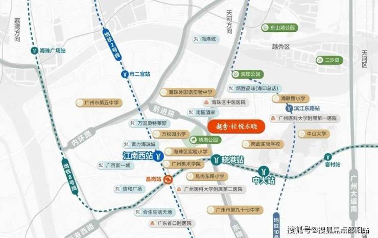 :越秀·桂悦东晓位于海珠区东晓路,紧邻晓港公园和珠水,拥有得天独厚的自然景观资源。同时,项目周边交通便捷,地铁8号线晓港站步行可达,可轻松前往琶洲、珠江新城等核心区域。