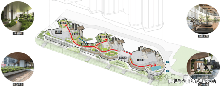 :项目在园林和公区打造上花了不少心思,采用岭南园林plus版的垂直园林设计,融入广雕、广绣、广府花窗等广式元素。公区配套方面,则通过抬高架空层,打造双层全龄会所配套,包括空中会所、社区学堂、亲子农场、图书馆等休闲、娱乐设施。