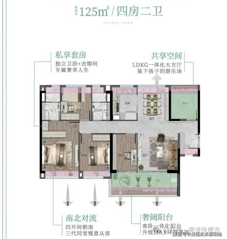 125方4+1房2卫,五开间朝南,客餐厅主卧南北对流,超实用LDKG大方厅,满足生活多样使用
