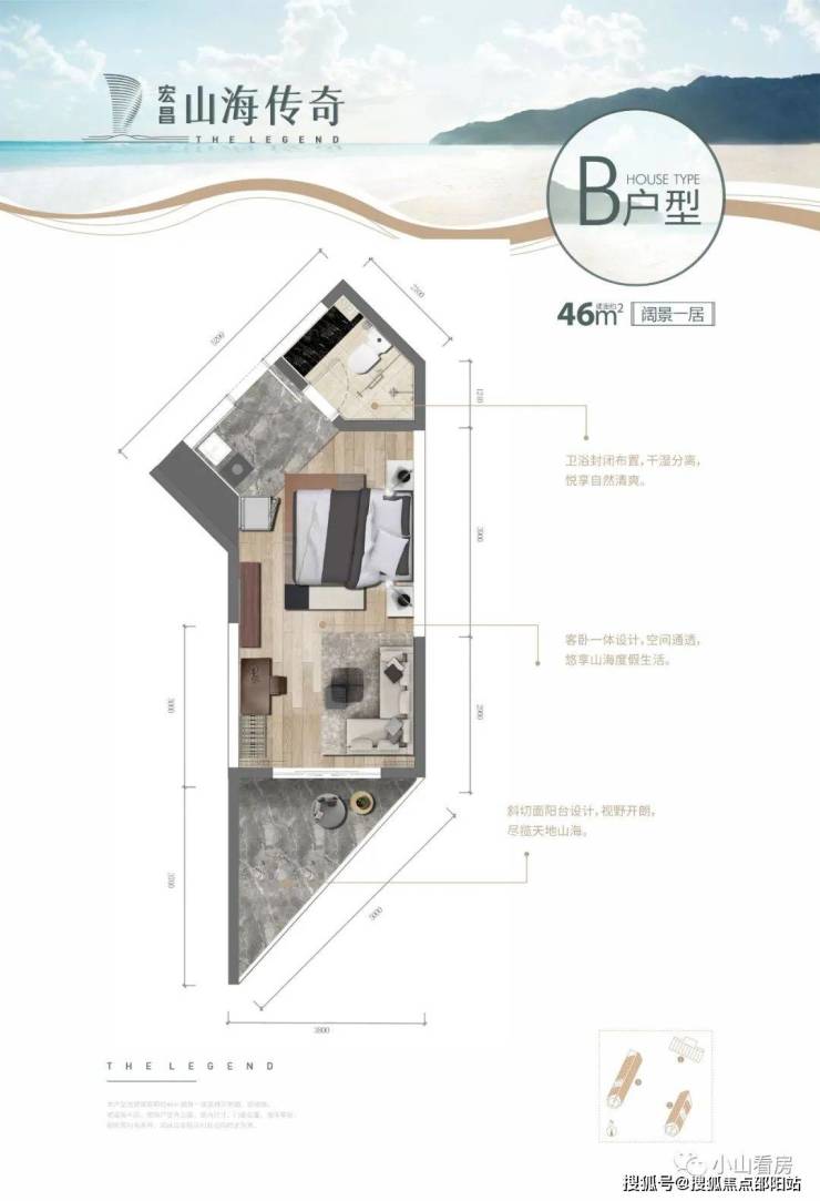 斜切阳台视野开阔,山海盛景一览无余