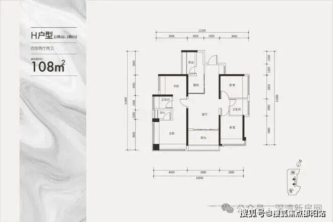建面约108㎡通透四房户型