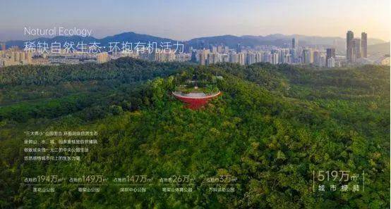 深业上城“缝合城市”创新理念,斥巨资打造两座生态廊桥,步行10分钟直通莲花山、笔架山、中心公园,纵享约4700亩城市绿肺,让城市与自然从容交汇。