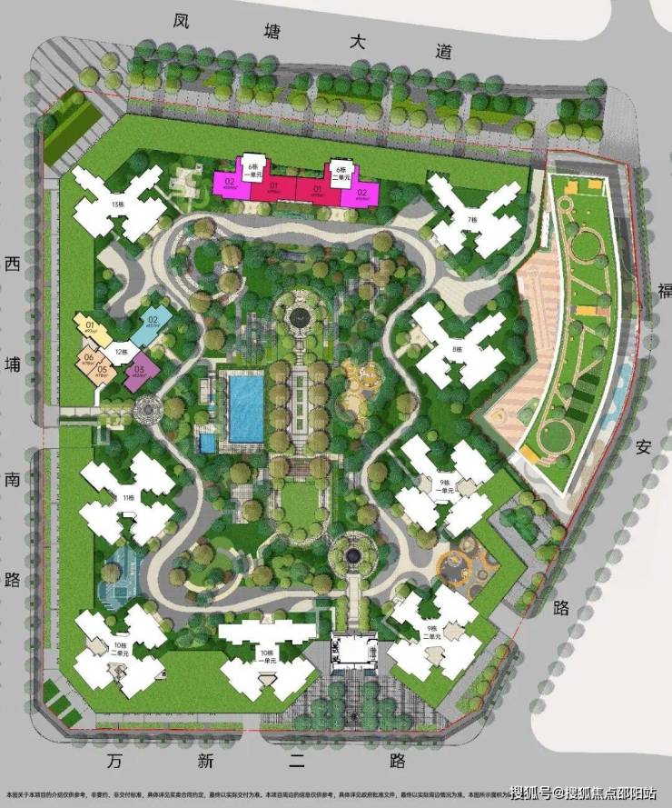 配备全龄子母双泳池、亲子乐园、交流花园,构建全龄活动功能配套,主出入口列阵式礼仪轴线,体现归家仪式感,品质尊崇感