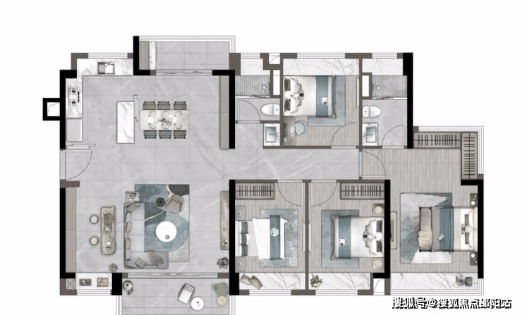 「建筑面积约98㎡丨四房两厅两卫」LDKG一体化阔绰设计南北通透全景双阳台创新可变空间星级主卧臻优套房联动式餐客厅U型大厨房