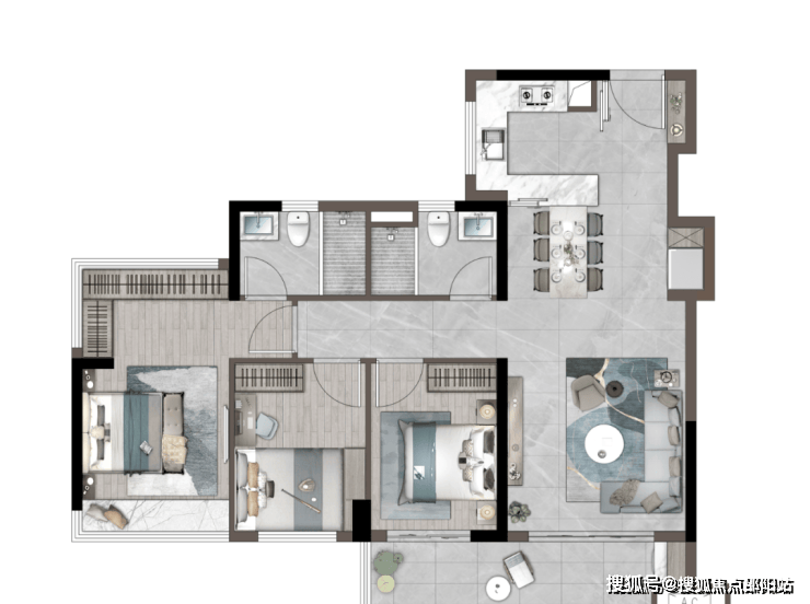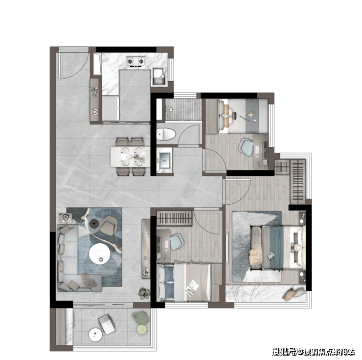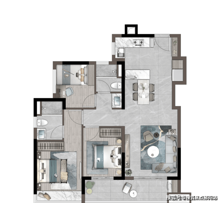 「建筑面积约89㎡丨三房两厅两卫」LDKG一体化设计U型厨房约6米双面宽超大景观阳台独立卧室带独立卫浴主题设计儿童房