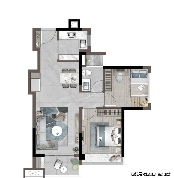 「建筑面积约67㎡丨两房两厅一卫」客厅带南向大阳台主次卧均赠送大飘窗卫生间三分区