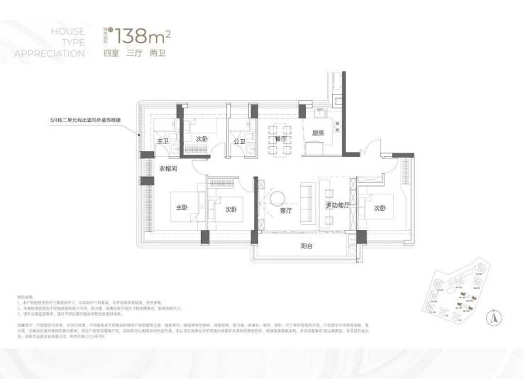 建面约138㎡4房2卫