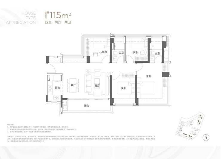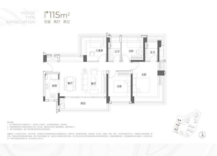 建面约115㎡4房2卫