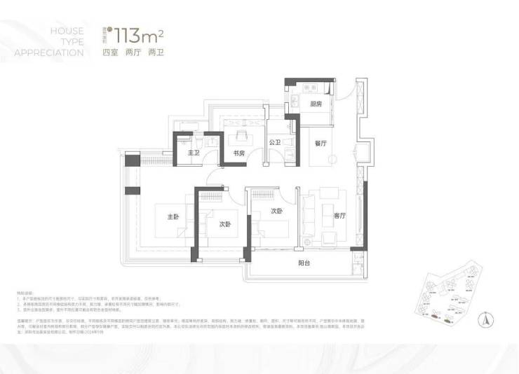 建面约113㎡4房2卫