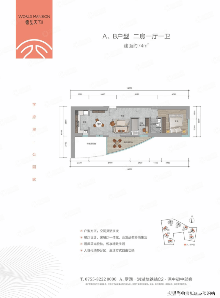 本项目是德弘天下华府,由茂业集团打造,位于罗湖区,紧邻洪湖地铁站C2出口及深中初中部。项目占地面积约4.29万㎡,总建筑面积近27万㎡,容积率为4.51,绿地率达48%,规划为8栋超高层建筑,形成半围合式布局。