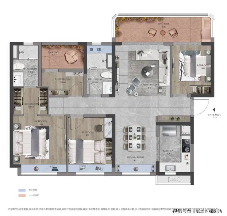 135㎡四房两厅两卫,约7m观景阳台,宽阔视野收藏中轴绿廊。