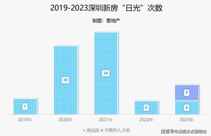 复盘2023年近144次推盘,全年商品房出现了6次“日光”,再算上7个售罄的人才房,共有13次日光。