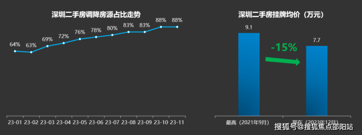 据悉,深圳业主平均挂牌价2021年是9万多,到2023年就只有7万多;包括银行评估价也不断下调,业主们降价的幅度持续走高,市面的笋盘更多了,目前的成交均价在6.5万徘徊。