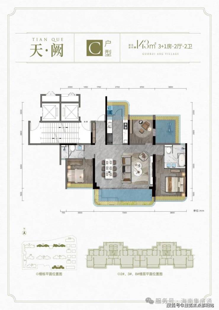 C户型: 建面约143㎡ 3+1房2厅2卫