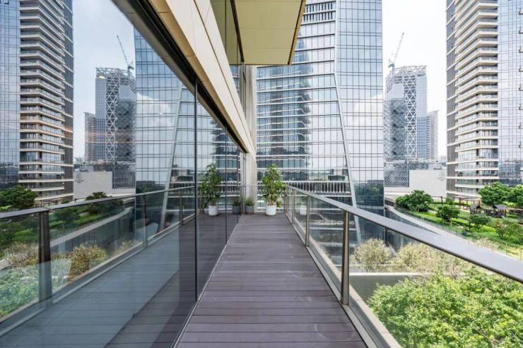 办公空间:标准层面积约2600-2800㎡,层高4.5米,配备VAV中央空调、网络地板及智能窗帘系统。