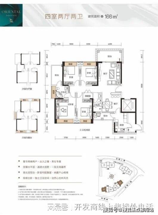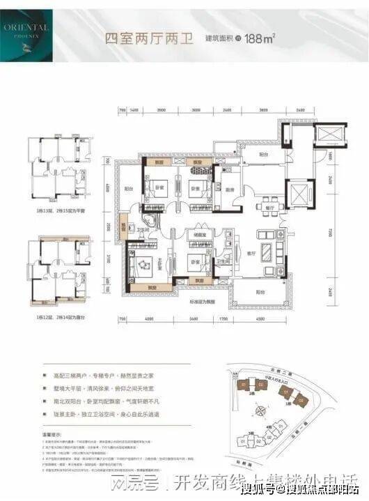 东方凤雅名苑户型图:主力户型为 166㎡-188㎡的四房,此外还有 92㎡-135㎡的三房至五房户型。以下是对部分户型的解读: