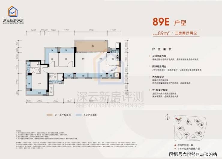 面积:本次首推1栋面积89㎡三房两卫,108㎡四房两卫