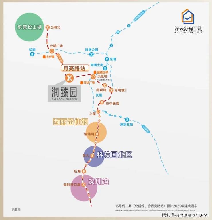 1、距离在建的13号线月亮路站约600米,预计2025年通车,届时去到南山非常方便;