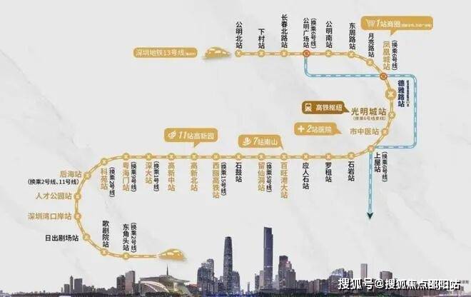 光明城站,深圳西北枢纽,完工并命名。设有6出入口、3安全口。配备电子票、无障碍通道和换乘指引,高铁地铁无缝换乘,步行2分钟