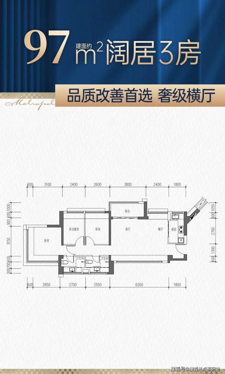 - **75-97㎡全能3房**:小面积高实用率,75㎡做到南向3房,主卧套间+6.3米横厅(97㎡),秒杀同面积段竞品。
