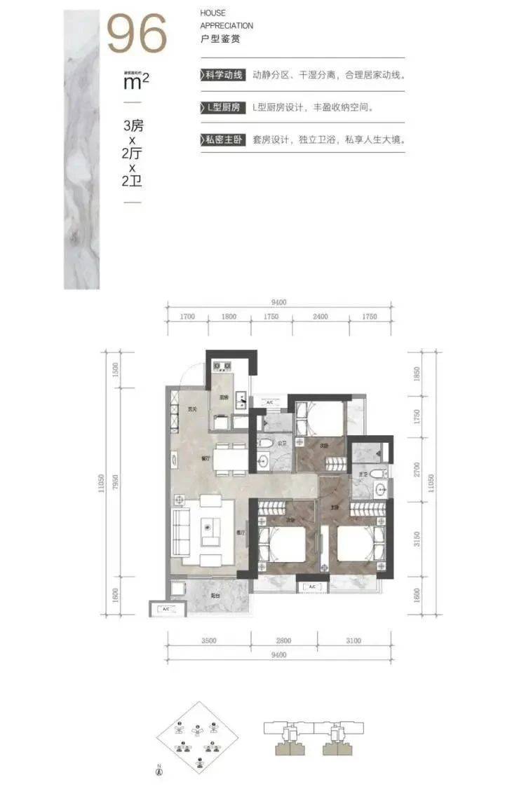 【主推户型】96-198㎡3-4房,77-96㎡双享空间
